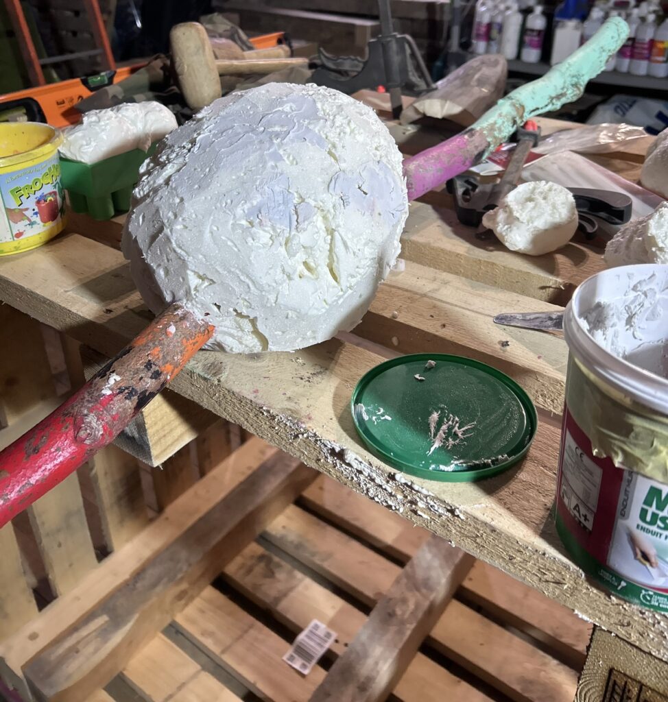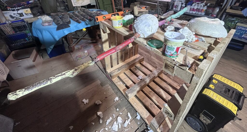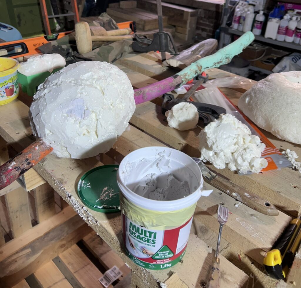 Alors une autre série est née dans l’atelier : des sculptures en cours de construction, faites de bois et de polyuréthane.